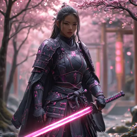 "core_9, score_8_up, score_7_up, score_6_up, score_5_up, score_4_up, (a fullbody shot of a fantasy female Samurai, holdin a green glowing katana:1.2)"