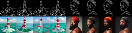 따라서 이 유형의 모델은 효율성이 중요한 사용 사례에 적합합니다. 또한, 미세 조정, LoRA, ControlNet, IP-Adapter, LCM 등 알려진 모든 확장 기능도 이 방법으로 가능합니다.