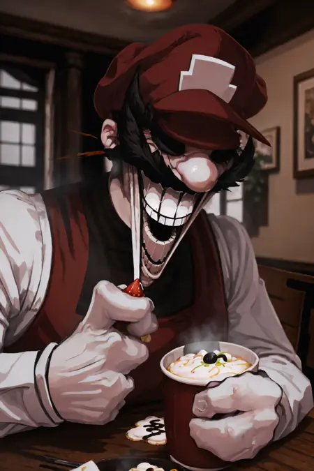 Weight can go from 0.8 up to 1.4. I recommend 1.15. Works with almost every Style, every Character and Photorealistic Models (kinda). A little difficult Character to generate, because SD barely knows horror and he does have overall special attributes likes no eyes, 4 fingers, insane teeth, giant, no neck, etc... Not my best LoRA, but def a cool one.