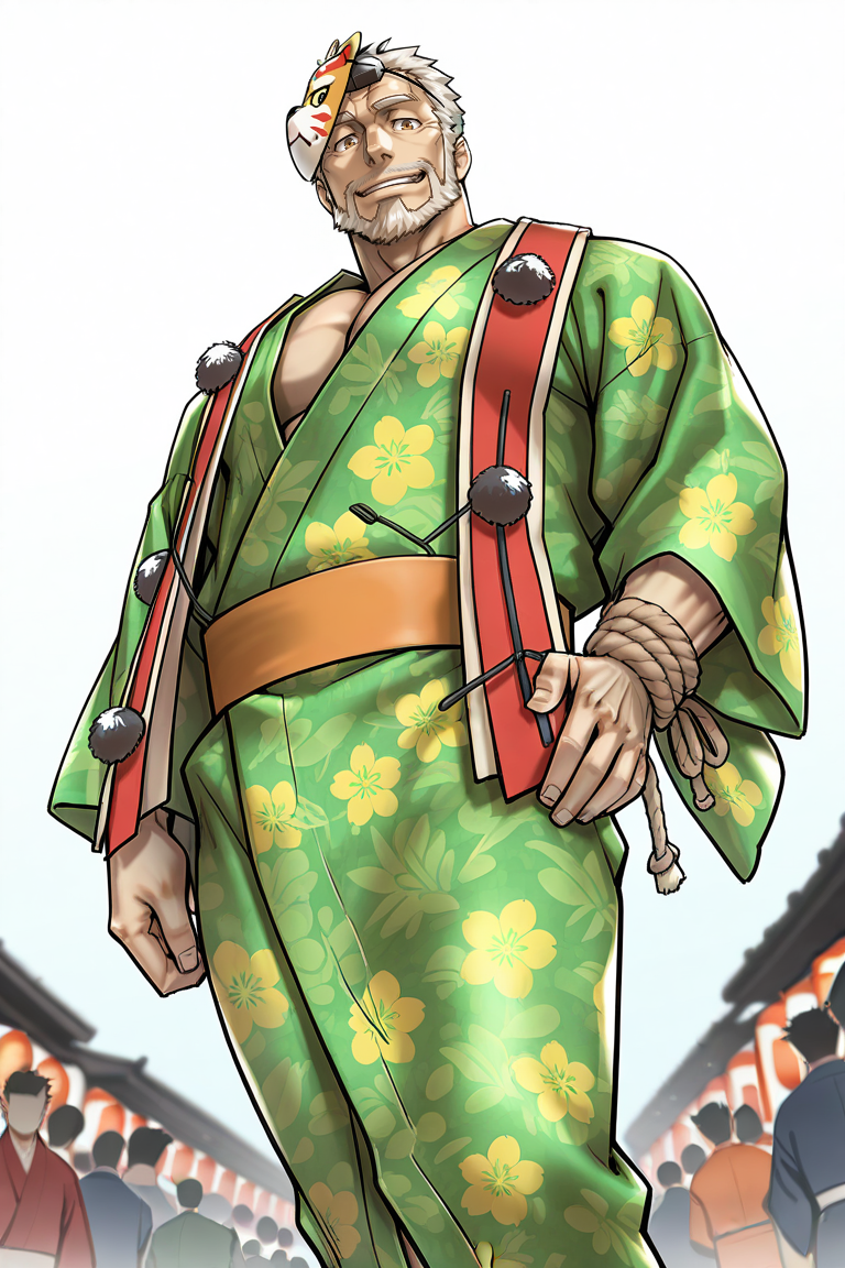 Negative Prompt: fundoshi, underwear, happi, kimono, yukata, Hakama, mask, ((multicolored shirt, deep blue shirt, black shirt, green shirt, black sleeves, green sleeves)), (handband), (red collar, red straps), multicolored hair, holster, vest, necktie, single tengu horn, black Tokin headwear