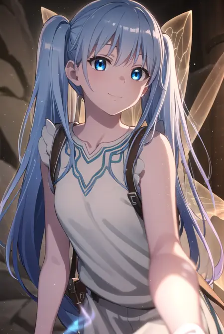 lafanpan, 長い髪, 青い目, ツインテール, 青い髪