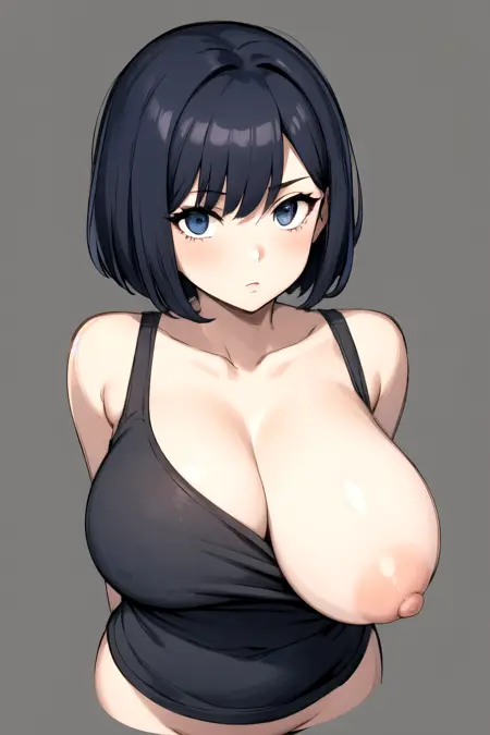 起始提示词:1girl, solo, huge breasts, (one breast out), [服装选项此处], breasts_out, nipples,