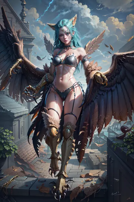 winged arms, bird legs, talons - 特徴を強調するため。
