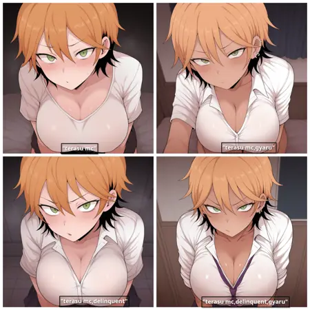 Optional additional words: narrowed eyes, delinquent, gyaru,terasu mc
