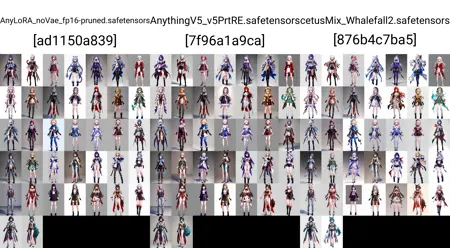 게임 버전 1.0부터 2.7까지의 여성 캐릭터 38명을 모두 포함한 하나의 LoRA.