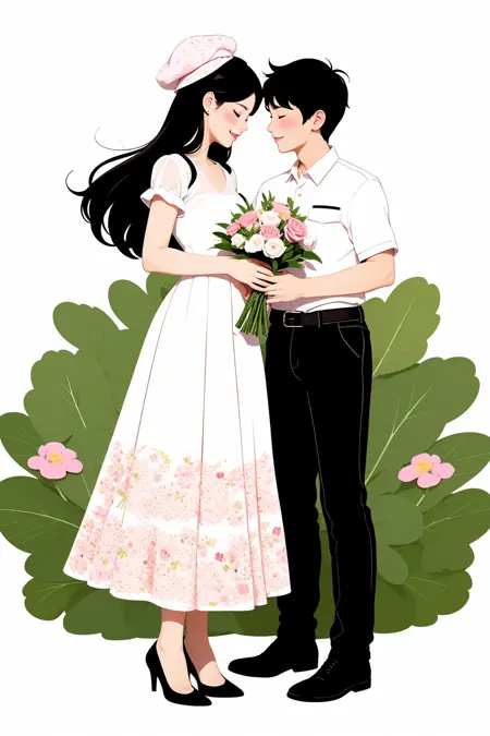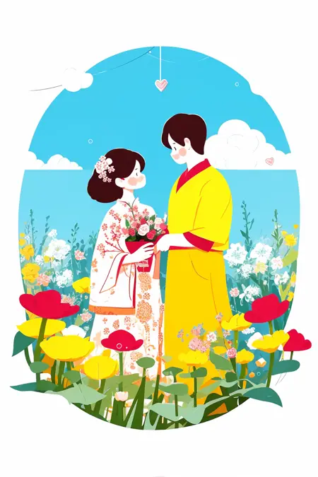 触发词: Valentine's Day,Flat painted style,