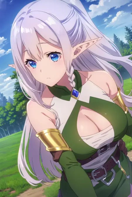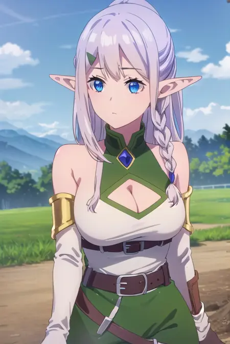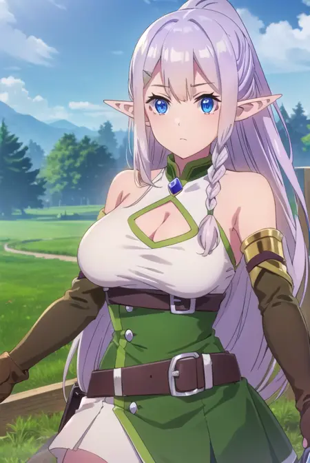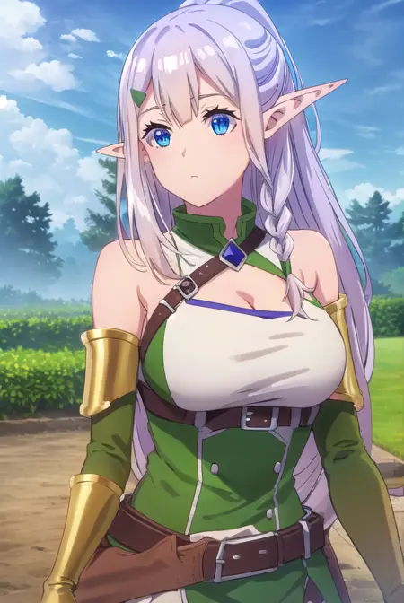 ria,长发,蓝眼睛,发饰,超长发,马尾辫,编发,尖耳朵,发夹,精灵,侧边编发,
