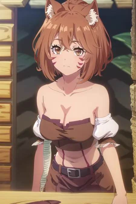 senna, short hair, brown hair, animal ears, (brown eyes:1.5), cat ears, facial mark,