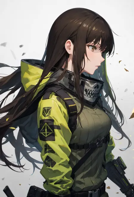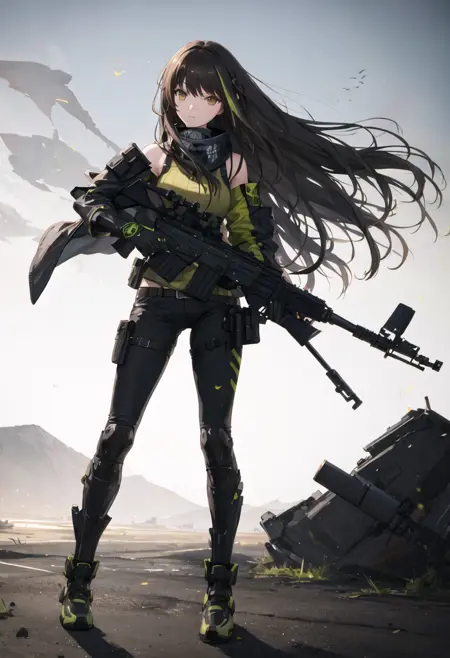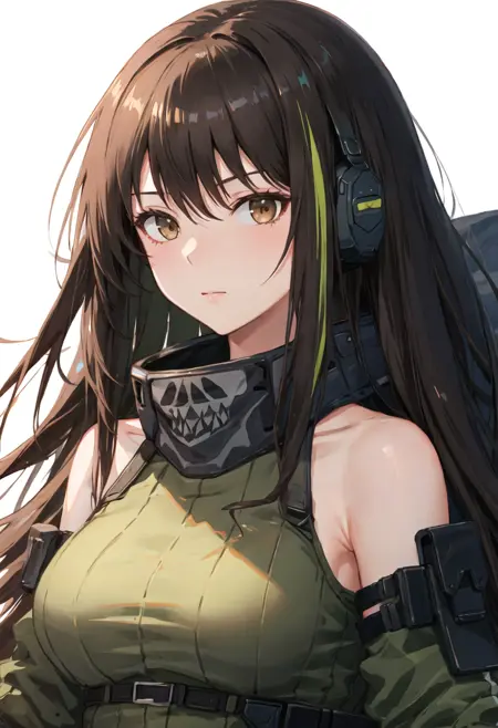 トリガー語は m4a1_girlsfrontline であり、削減されたタグは long_hair, multicolored_hair, streaked_hair, bangs, green_hair, brown_eyes, brown_hair, breasts, black_hair, headphones です。あるとき、特定の特徴(例:髪の色)が安定しない場合、これらをプロンプトに追加してください。