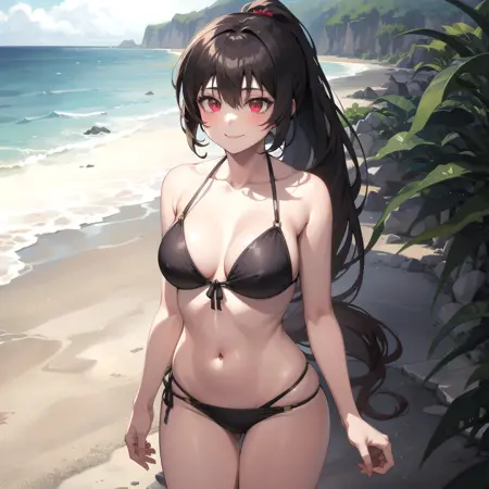 base prompt i use is " 1girl, red eyes, brown hair, long hair, ponytail"