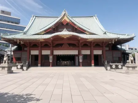 • おすすめ呪文 / Recommended Prompt: (kandamyojin, extremely detailed japanese architecture, statue, rooftop, donation box, pavement, stairs)