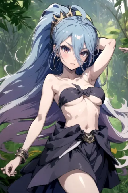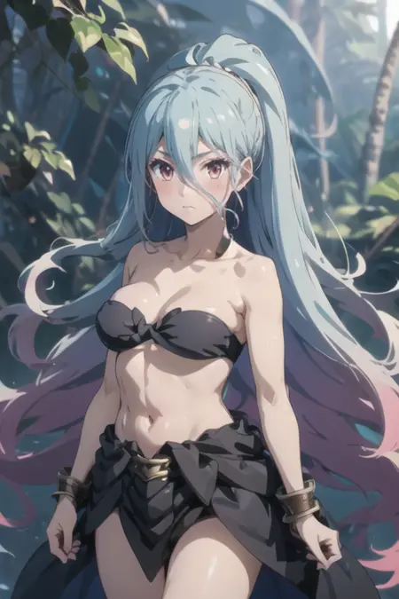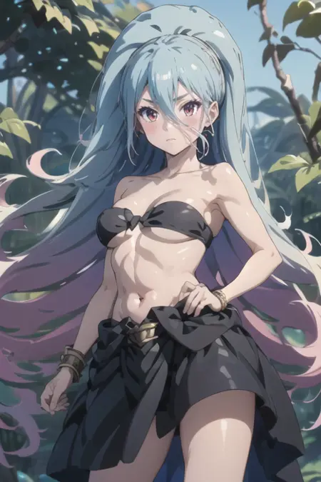 | トレーニングワード | long hair,bare shoulders,very long hair,1girl,collarbone,looking at viewer,navel,hair between eyes,Large Breast,solo,closed mouth,strapless,stomach,jewelry,bandeau,skirt,v-shaped eyebrows,cowboy shot,midriff,bare arms,black skirt,tube top,ahoge,bikini,swimsuit,standing,black bikini,コピーしました! |