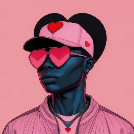 Example Prompt: lora:blacklove:1 Black Love, Pop Art style portrait, individual, 1girl, dark skin, afro-textured hair, heart-shaped pink sunglasses, striped heart background, fitted baseball cap with a heart emblem, subtle patterns, cool and contemporary vibe, vibrant and striking, trending on ArtStation.