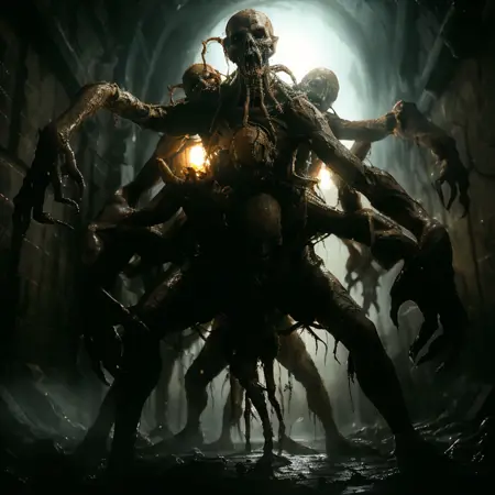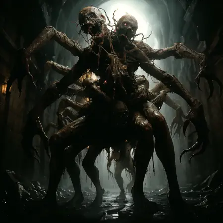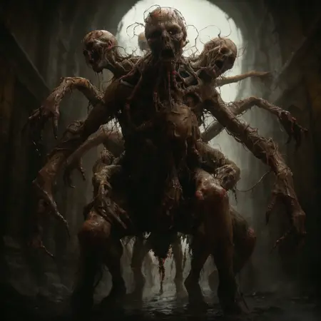 Monglork 是由多个身体融合而成的恐怖恶魔怪物。当一个强大的恶魔或领主厌倦了折磨其受害者时,有时会将这些受害者拼凑成Monglork,使其成为听命于自己的、令人作呕的身体残骸集合体。Monglork身上众多孔洞中不断涌出血液和胆汁,散发出可怕的恶臭并形成腐蚀性的污秽物。