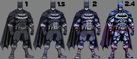 학습 데이터에는 무기를 든 카우보이와 사무라이의 이미지가 많이 포함되어 있으므로, 프롬프트에 이러한 요소를 포함하는 것이 좋습니다.