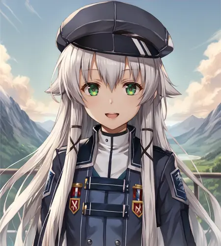 <lora:TrailsOfColdSteel-ClassVII:0.9>, altinathors, white hair, long hair, sidelocks, green eyes, flat chest, black cabbie hat, blue shirt, school uniform, skirt, black pantyhose, white boots,