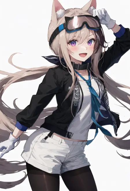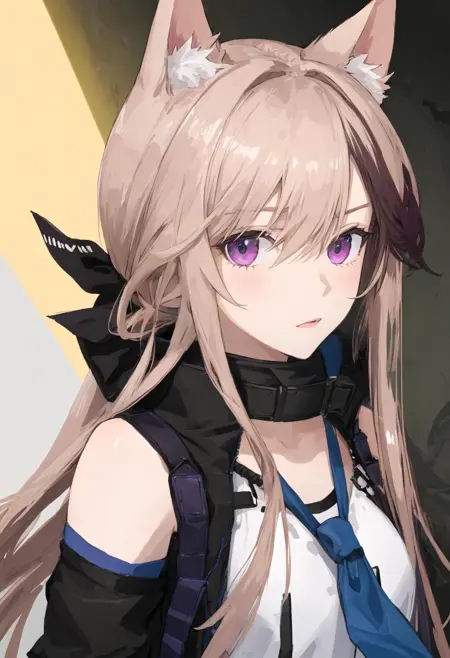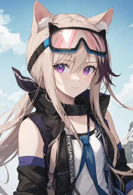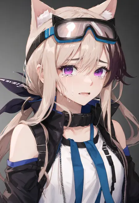 触发词为 cardigan_arknights,精简标签为 animal_ears, long_hair, purple_eyes, dog_ears, multicolored_hair, goggles_on_head, dog_girl, streaked_hair, brown_hair, animal_ear_fluff, hair_between_eyes, tail, dog_tail。当某些特征(例如发色)有时不够稳定时,您可在提示词中添加这些标签。