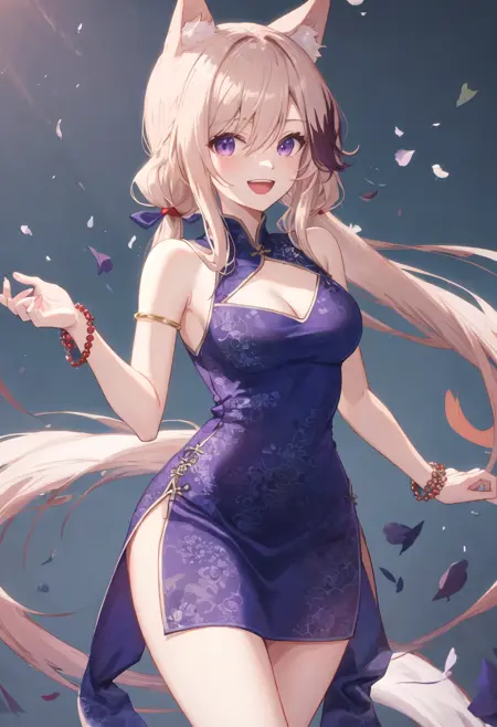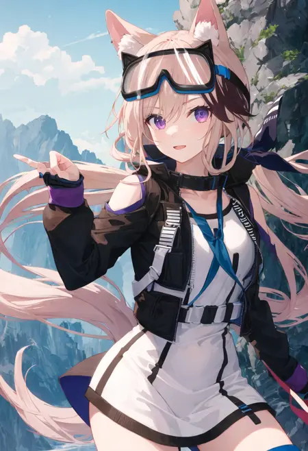 - 经过精简的角色标签包括:动物耳朵、长发、紫色眼睛、狗耳、多色头发、头戴护目镜、狗娘、条纹发、棕色头发、动物耳绒毛、眼睛间头发、尾巴、狗尾。当角色的核心特征(例如发色)不够稳定时,您可以在提示词中添加这些标签。