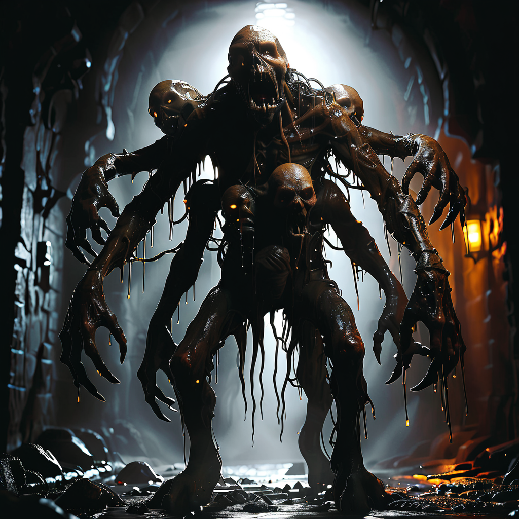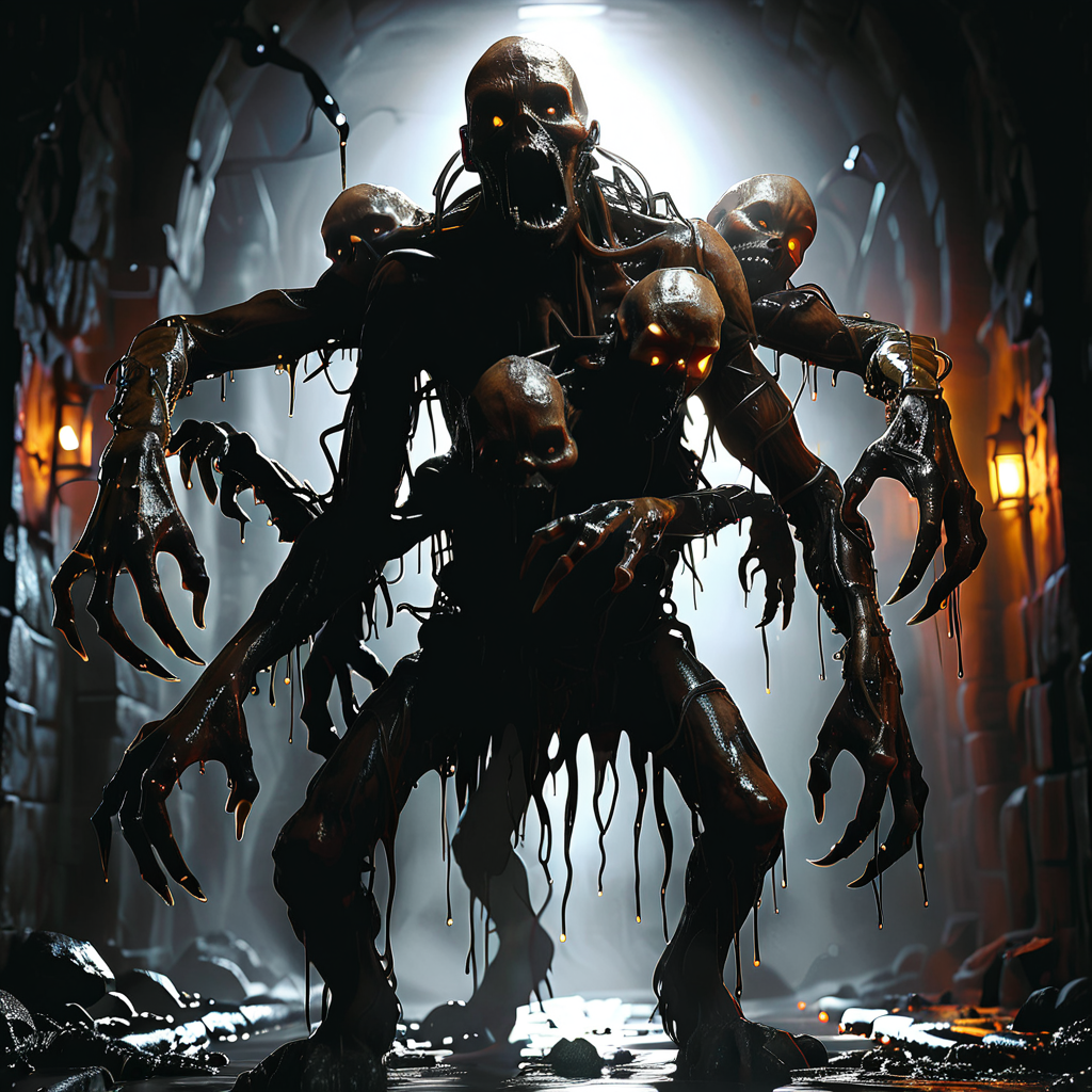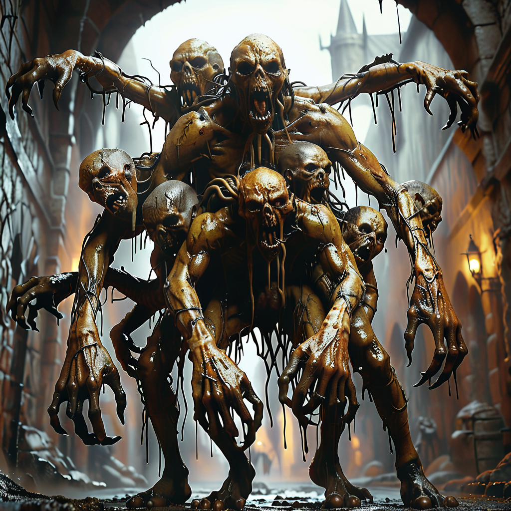 몽록(Monglork)은 끔찍한 악마적 괴물로 합쳐진 몸체들의 융합체입니다. 더 큰 악마나 영주가 희생자들을 괴롭히는 데 싫증을 느낄 때, 종종 이 희생자들을 이용해 몸체의 끔찍하고 비참한 더미로 만든 몽록을 만들어 명령을 수행하게 합니다. 몽록의 수많은 구멍에서 피와 담즙이 쏟아져 끔찍한 냄새와 부식성의 더미를 만듭니다.