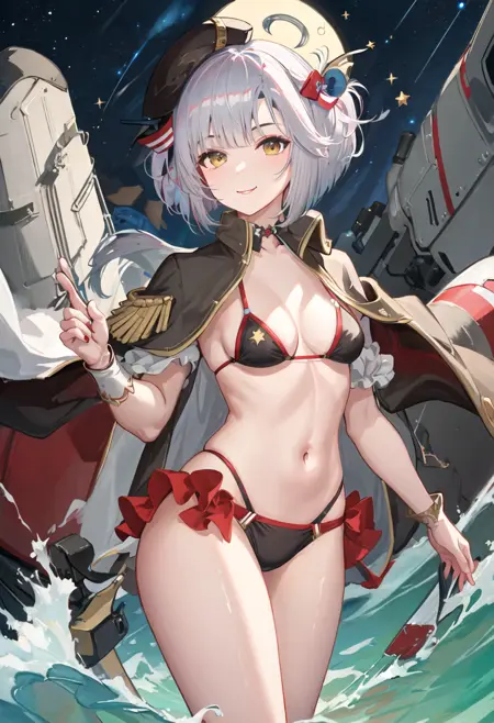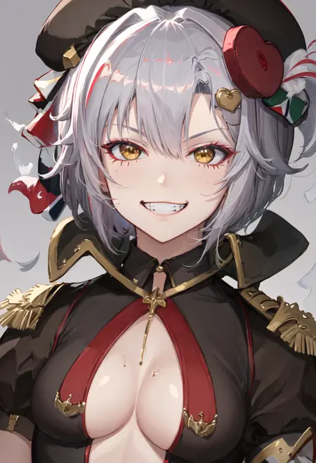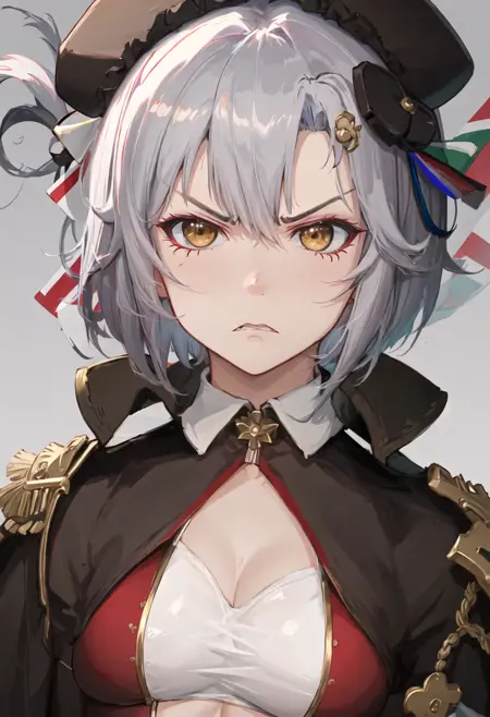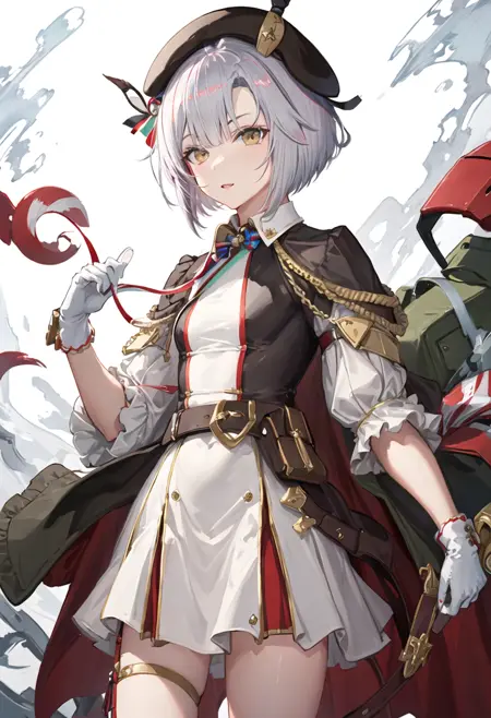 - 축소된 캐릭터 태그는 grey_hair, yellow_eyes, short_hair, bangs, beret, hat, black_headwear입니다. 캐릭터의 핵심 특징(예: 머리색)이 안정적이지 않을 때 이 태그들을 프롬프트에 추가할 수 있습니다.