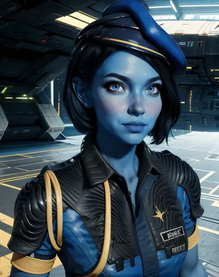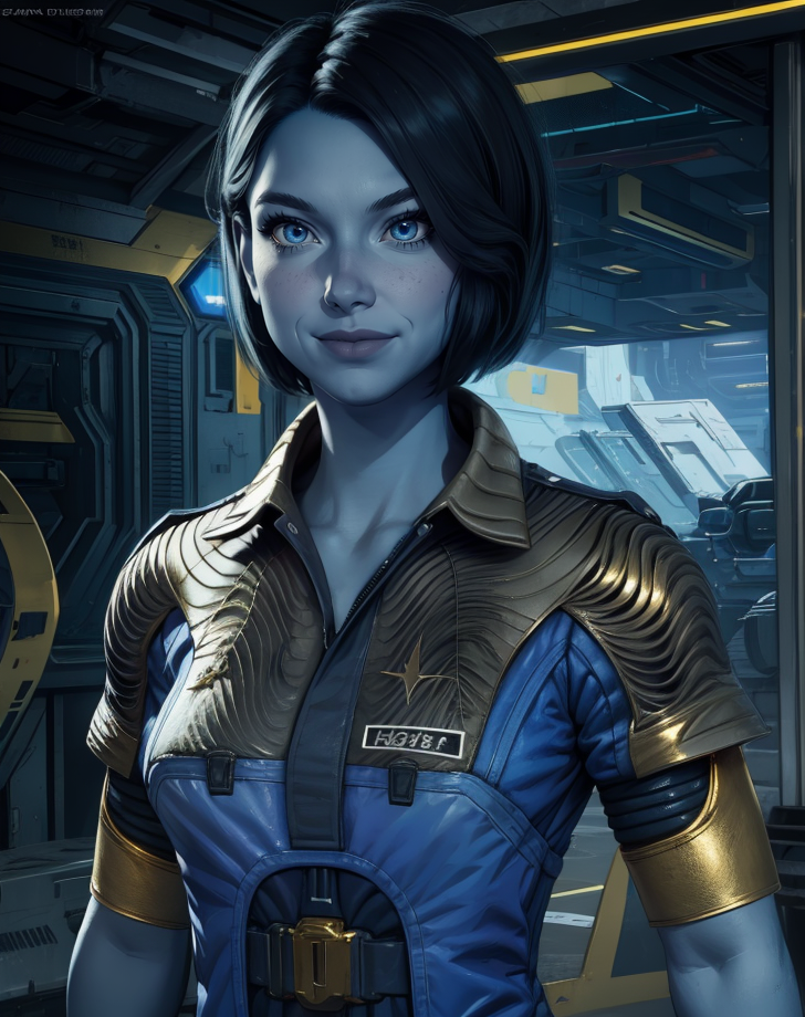 nikkiG, blue eyes, blue skin, black hair, short hair,