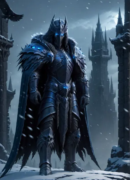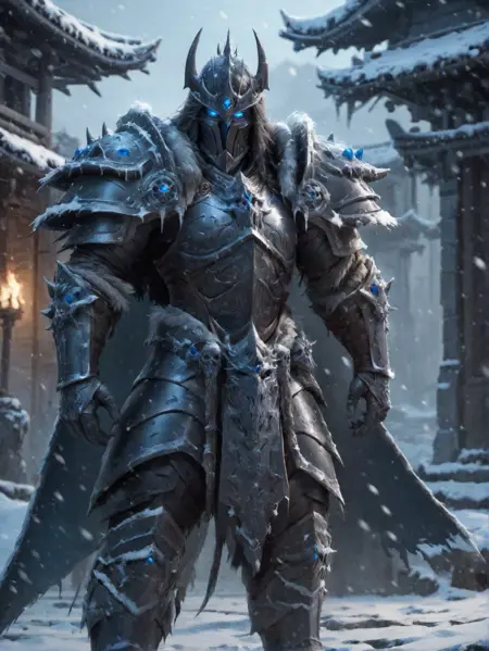 Triggerwords: deathknight,armored,skull,glowing eyes,snowing,skulls