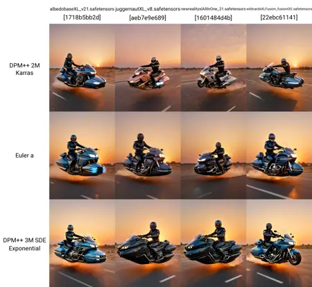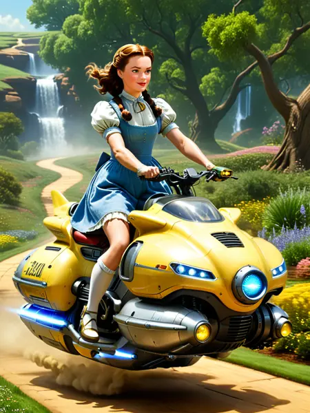 使用 "lora:Hover_Bike:1_ hover_bike",这应该是个不错的起点……如果您的检查点模型对此有抵触,可以添加 "无轮摩托车"(并提高权重!)。它在 Euler a(或 DPM++ 2M SDE Exponential)下效果最佳。