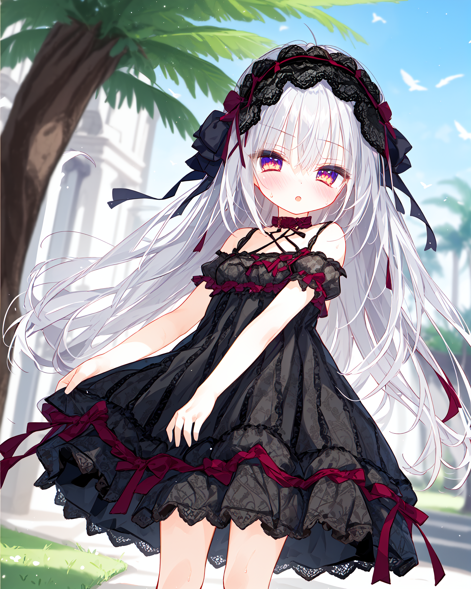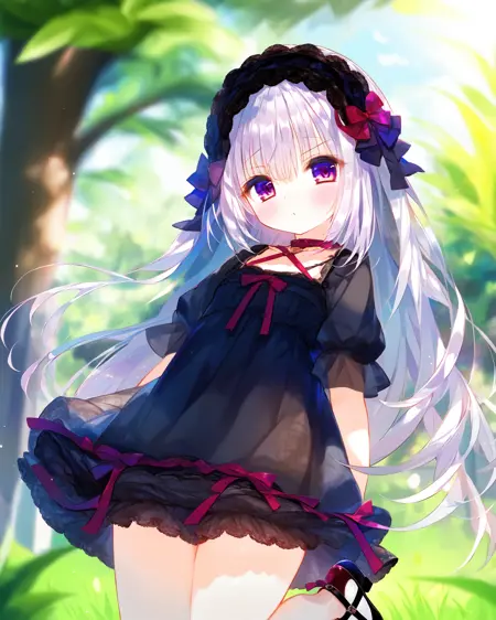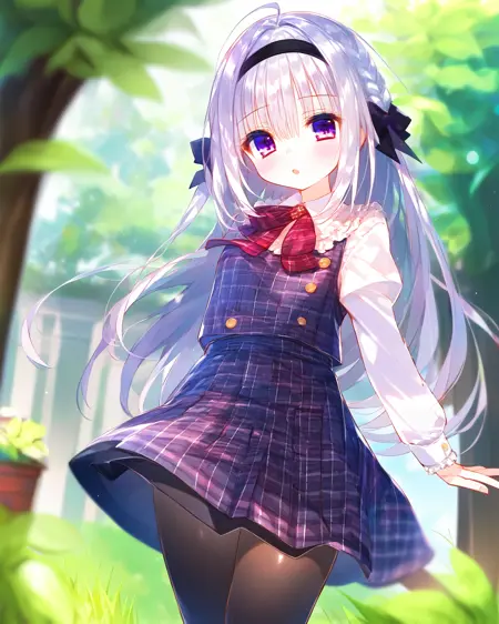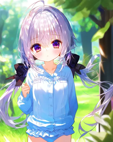 基础形象tag:manami, 1girl, solo, long hair, silver hair, purple eyes, blush
