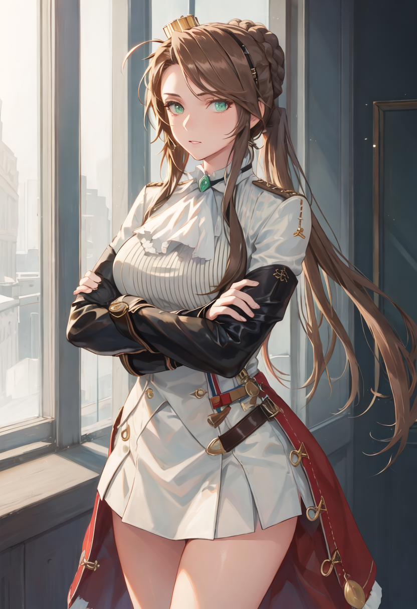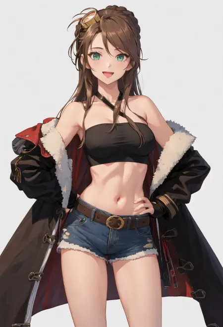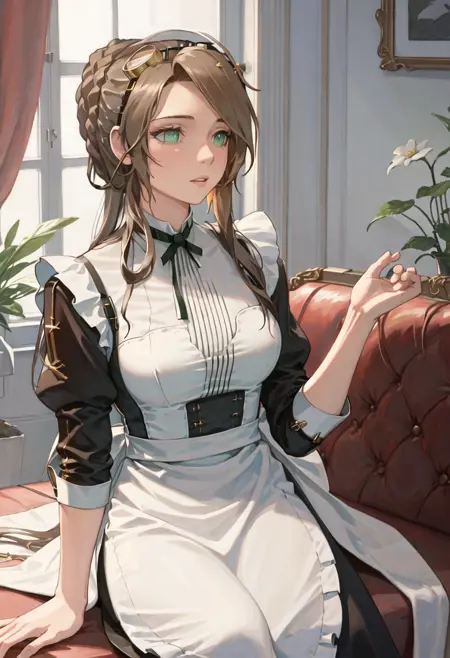- 축소된 캐릭터 태그는 brown_hair, green_eyes, long_hair, breasts, braid, bangs, large_breasts, hair_ornament입니다. 캐릭터의 핵심 특징(예: 머리색)이 안정적이지 않을 때 이러한 태그를 프롬프트에 추가하실 수 있습니다.