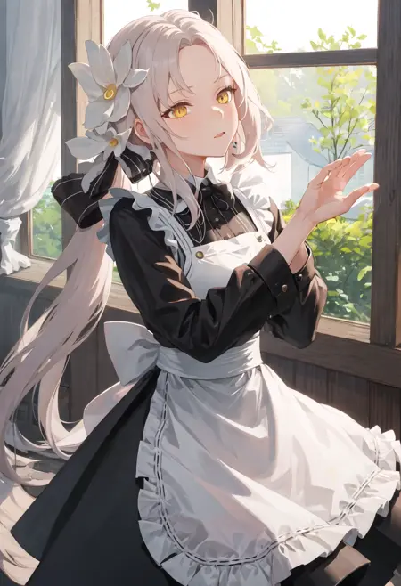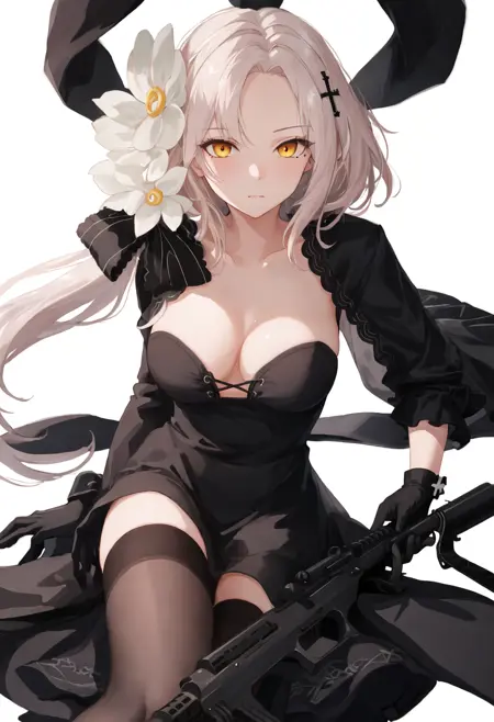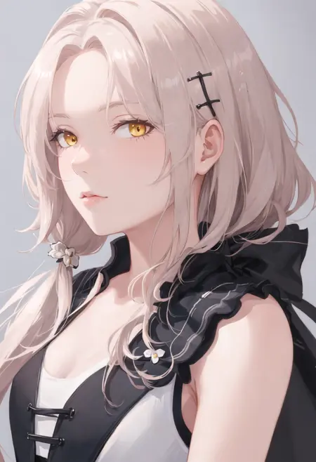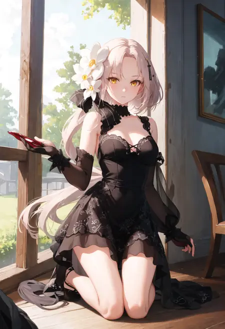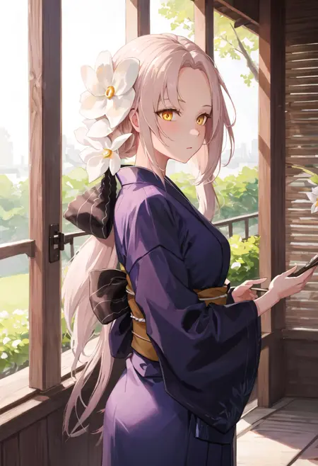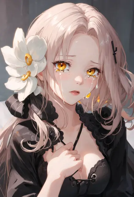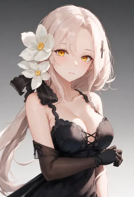 - The pruned character tags are long_hair, hair_ornament, hair_flower, yellow_eyes, bangs, breasts, hair_ribbon, ribbon, medium_breasts, blonde_hair, orange_eyes. You can add them into prompts when core features (e.g. hair color) of character is not so stable.
