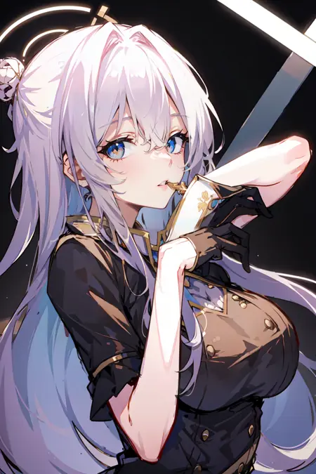 The lora's idea was to generate great poses with a person biting his glove and it didn't work, but I'll see how to fix it.