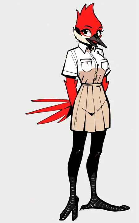 强化标签:鸟腿、黑色腿部、鸟、黑眼、红皮肤、红羽毛、羽毛、白皮肤、黑皮肤、多色皮肤、长喙
