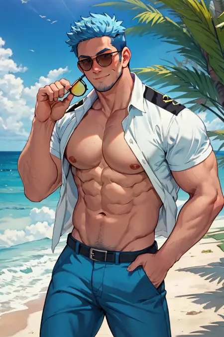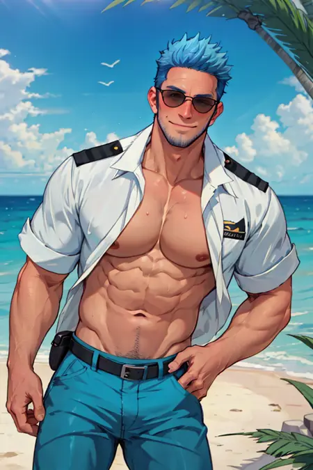 캐릭터baradaddymuscularhandsomemuscular malemasculineyaoisunglassesglassesblue hairgame charactermalemanshort hairuniformbeardgamehumanizationcharacterspilotnecktieanthropomorphicmature maleanimal crossinghunkdilfmale charactermuscular manstubblesgijinkaathletic bodywilburaviatorchinstrap beardchin curtain