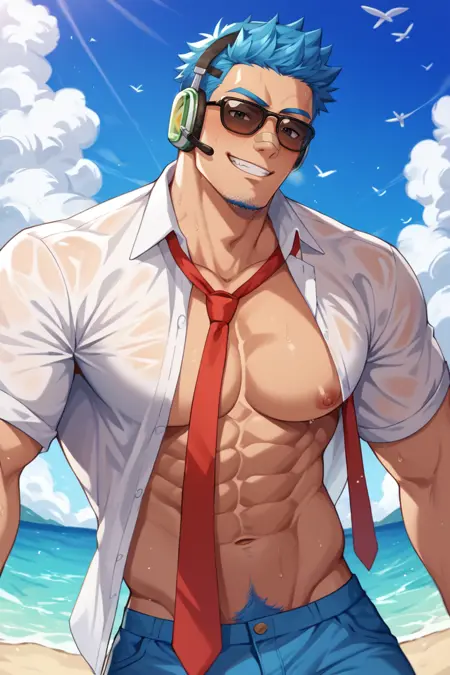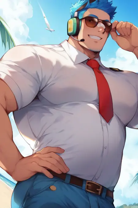 캐릭터baradaddymuscularhandsomemuscular malemasculineyaoisunglassesglassesblue hairgame charactermalemanshort hairuniformbeardgamehumanizationcharacterspilotnecktieanthropomorphicmature maleanimal crossinghunkdilfmale charactermuscular manstubblesgijinkaathletic bodywilburaviatorchinstrap beardchin curtain