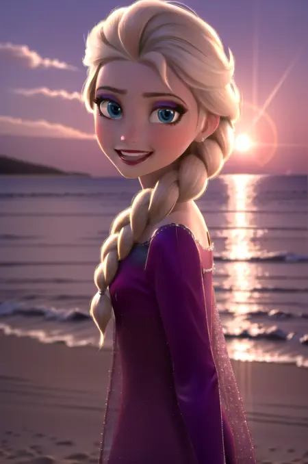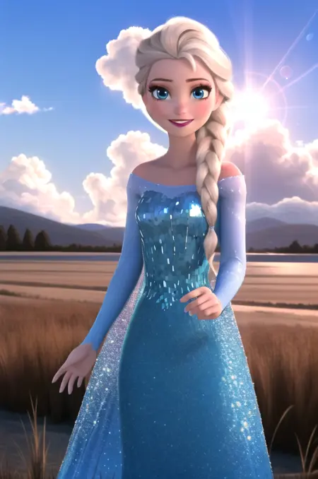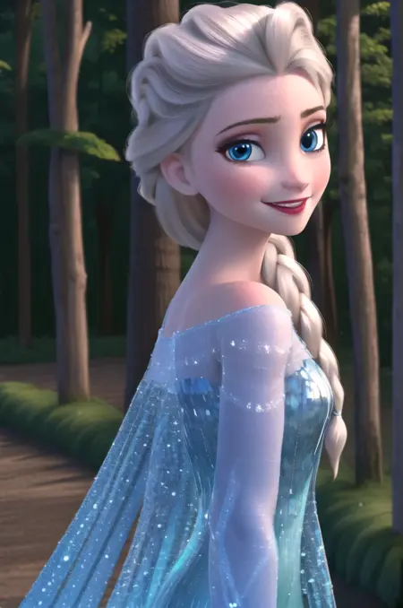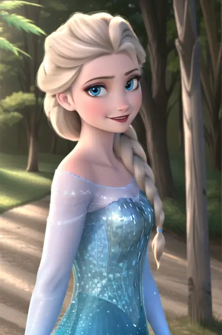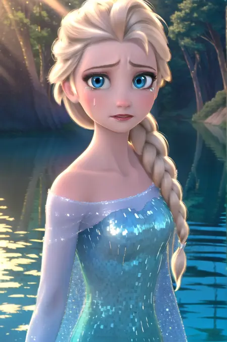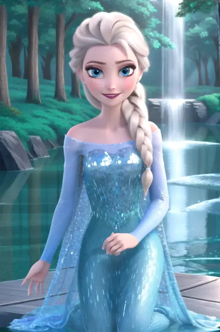 <lora:Elsa-v1-07:0.6>, ChopioElsa, long hair, white hair, blue eyes, single braid, hair over shoulder, freckles, makeup, lipstick, (looking at viewer:1.3),