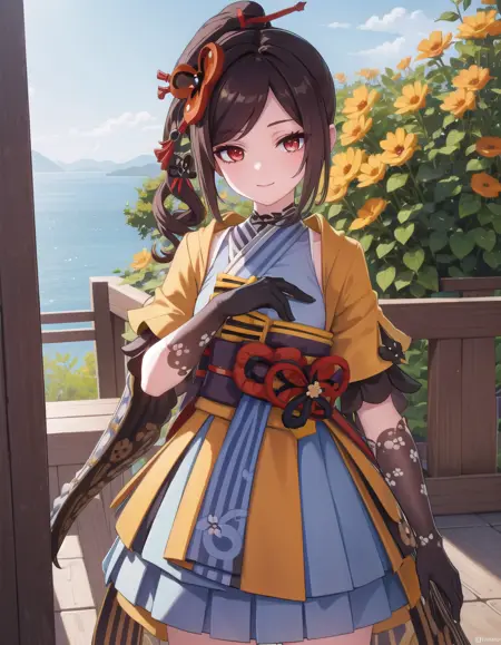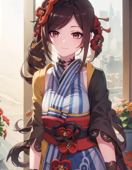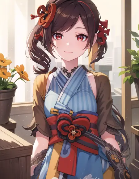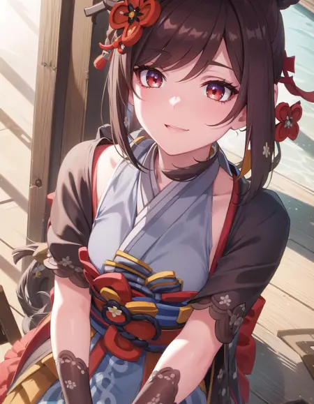 chiori、茶色の髪、髪飾り、(赤い目:1.3)、花、髪の花、