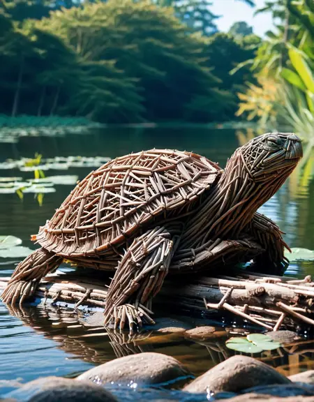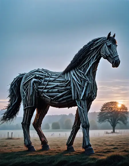 On single objects, expect the object to be made entirely from sticks and twigs. On more complicated scenes sticks and twigs will feature and influence the image in a more subtle way.