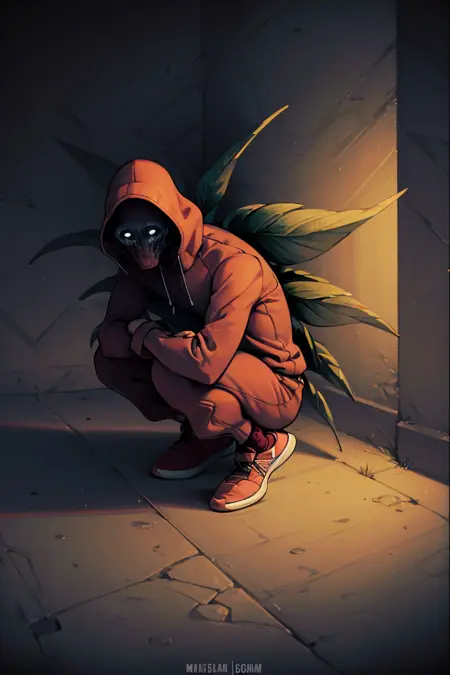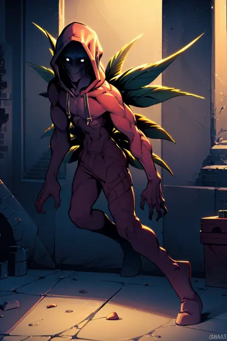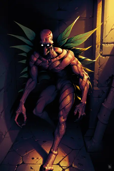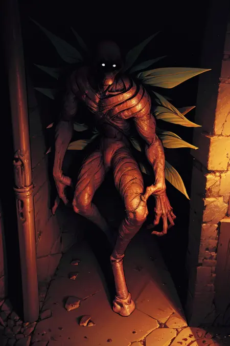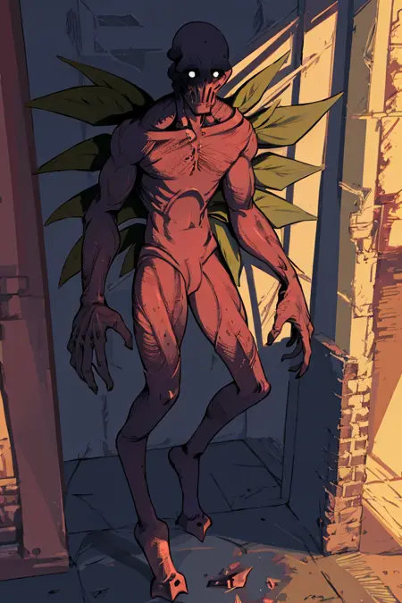 BrackenLethalCompany, white eyes, monster, wings, leaf