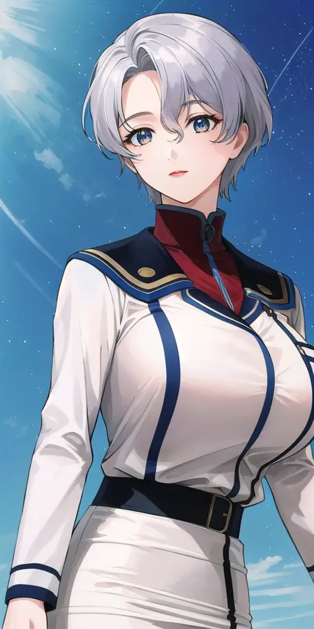 Naval_uniform_White_jacket_White_pencil_skirt_miniskirt_Belt_long_sleeves_turtleneck: Her uniform.