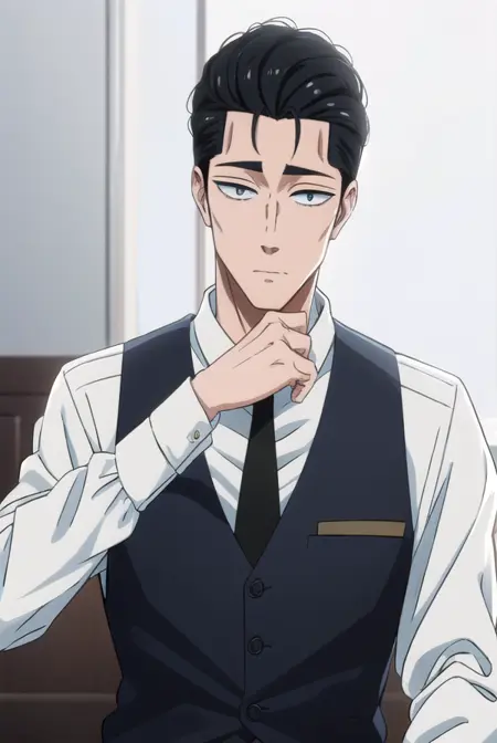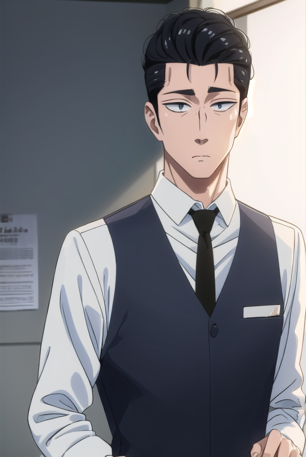 masami kondou, 단발, 검은 머리, 남성 중심, (검은 눈:1.3), 성숙한 남성,