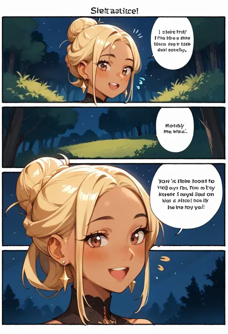 The good thing about being a concept is that you can choose the style you like, in general it is trained with the 4koma format but a 4koma can vary from three to twelve panels ~