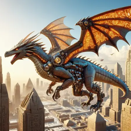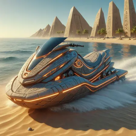In this alternate history, ancient Egypt's ingenuity transcends time, giving birth to the cutting-edge Egypt Tech! Behold towering obelisks powered by liquid solar energy, hieroglyphic interfaces unlocking the secrets of the digital age, and majestic sphinx-like robots guarding the entrance to virtual realms. a world where the tradition and innovation converge into an immortal civilization.