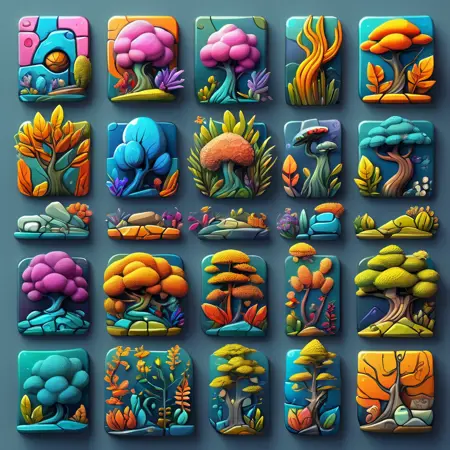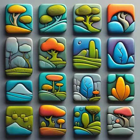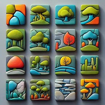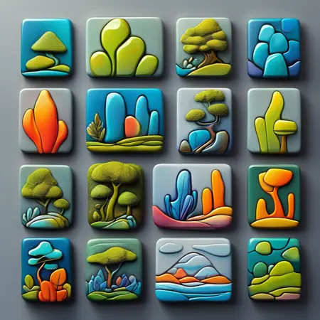 this is a sexcond iteration of the icon collection, this one called tiles. it is composed of only 8 pieces of data, so you will need to mess around to get specfically what you want out of it, with regards to subject matter and maintaining the style. ill be putting out more tile sets soon.