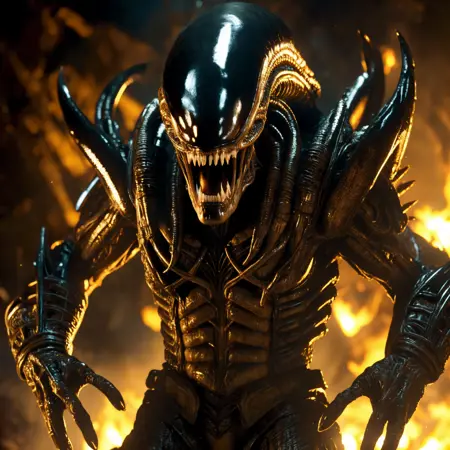 a badass combo of Alien and Predator, with a pinch of mechanical creatures and various body parts.