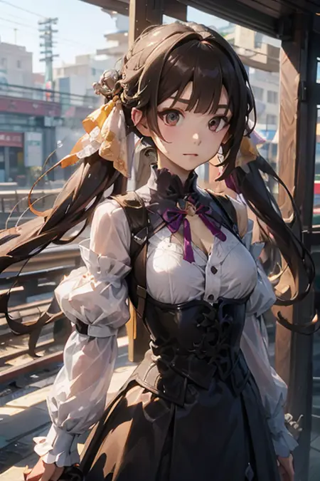Only trigger word calls with features: golden pupils, brown hair, double ponytails, randomly resembling official clothing.