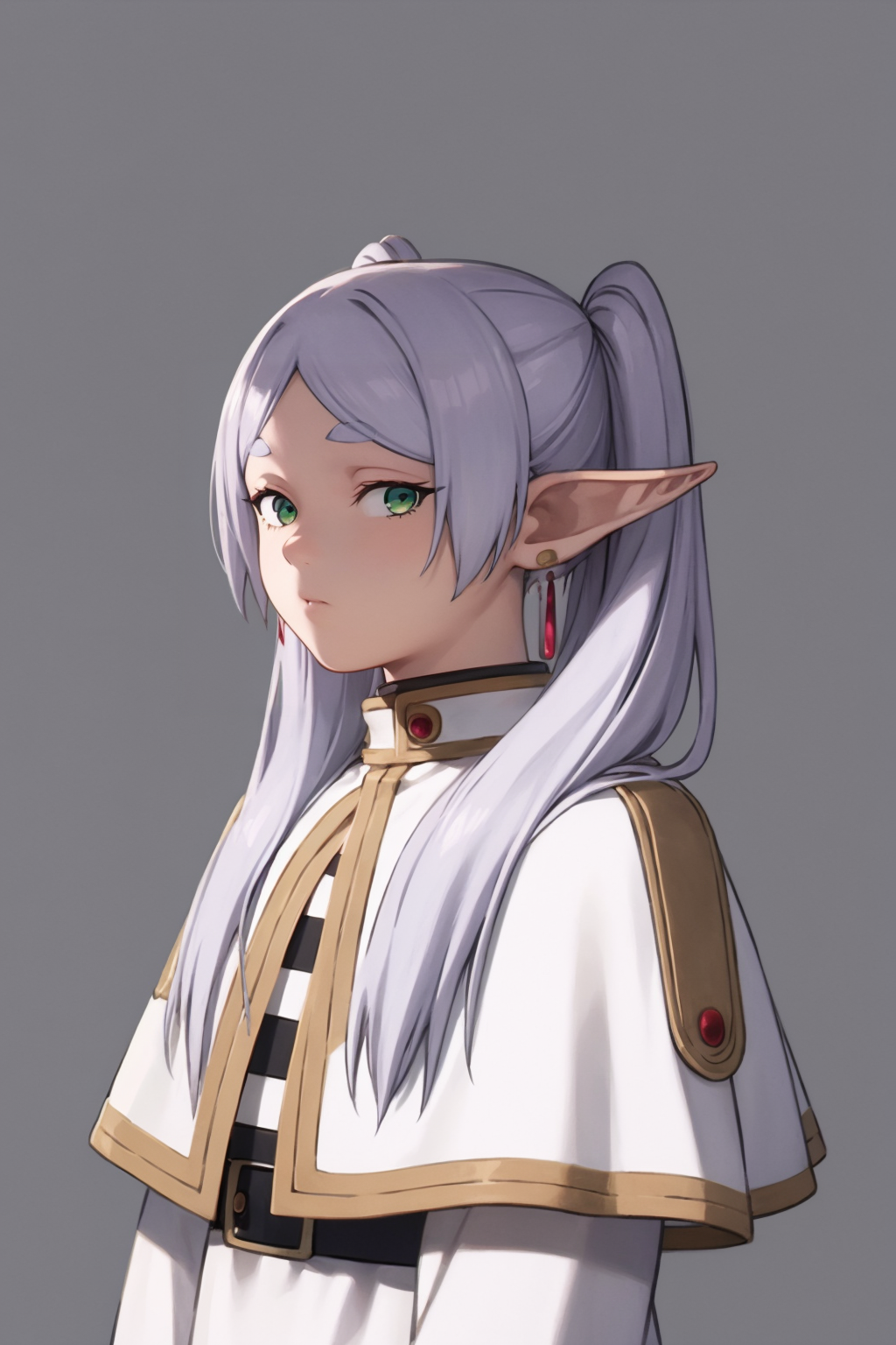 Basic prompts : 1girl, green eyes, grey hair, twintails, pointy ears, thick eyebrows, earrings