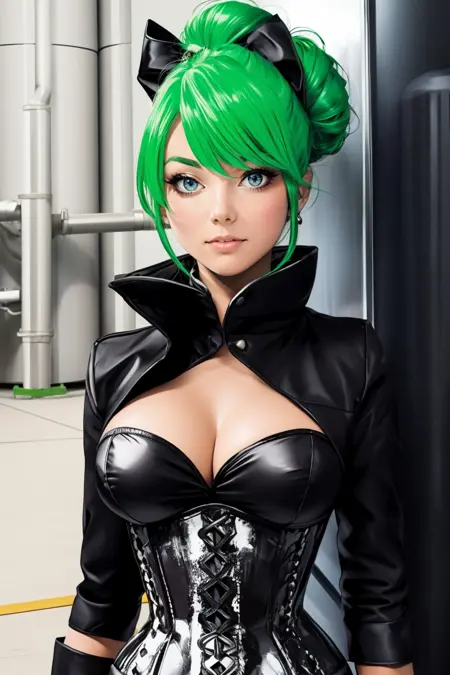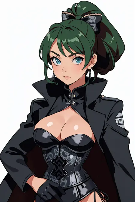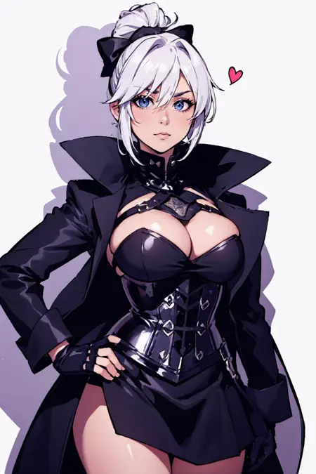 このLoRAは、コルセットドレスとハイカラージャケット、ヘアボウ、ブーツの組み合わせを生成します。色を自由に変えてお楽しみください。