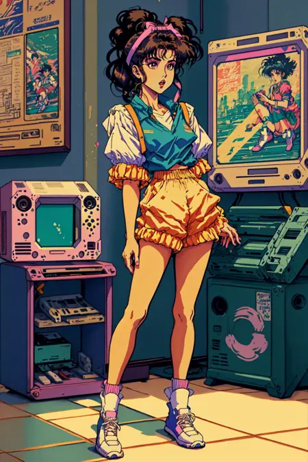 미드저니 만화/애니메이션 프롬프트의 레트로웨이브 스타일 “80년대/90년대” 분위기. 이는 Niji 기반은 아닙니다.