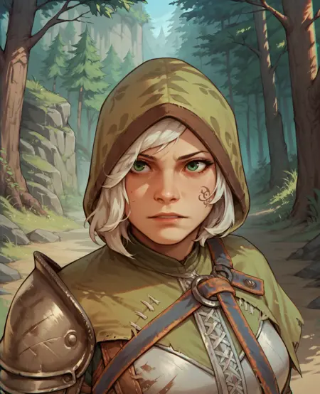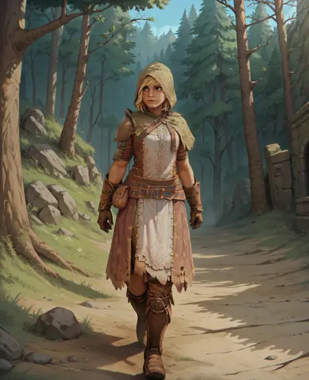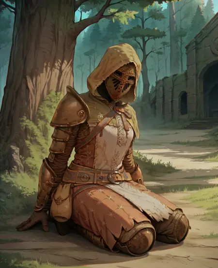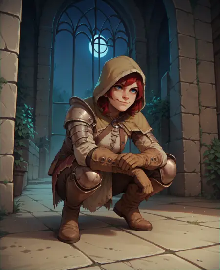 Trigger: PKFH, 1girl, armor, hood, sleeves, pants, gloves, boots