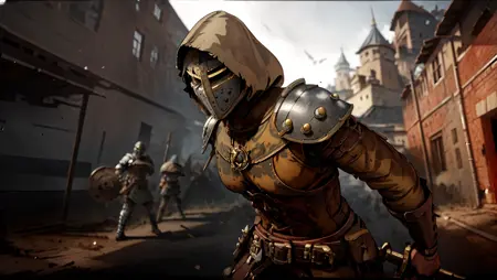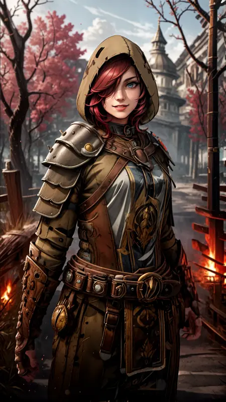 Trigger: PKFH, 1girl, armor, hood, sleeves, pants, gloves, boots